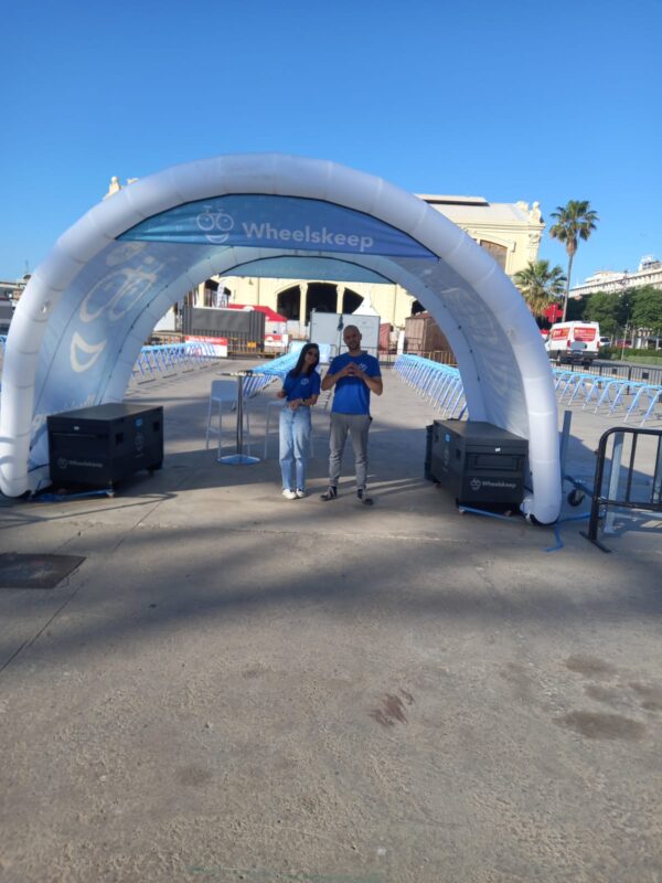 Carpa aparcamiento bicicletas entrada París Saint Germain Parking Wheelskeep