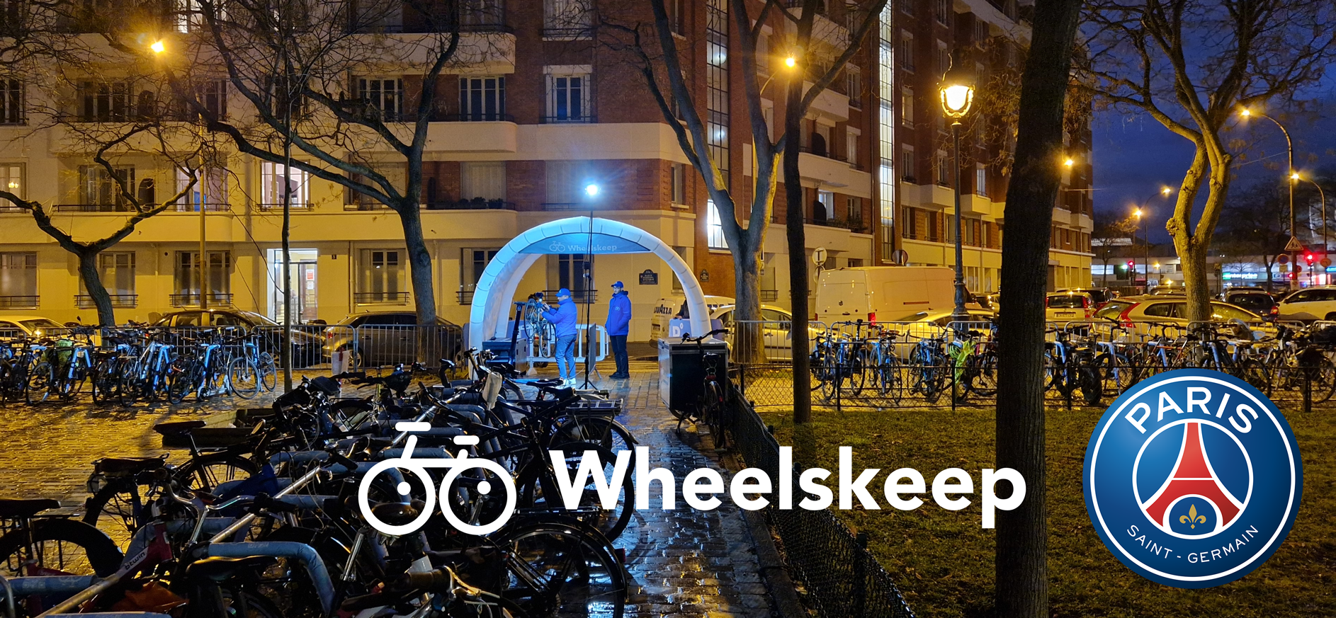 Implantado en la plaza Stéfanik para el emblemático estadio Paris Saint Germain, promoviendo el transporte ecológico y acomodándose a las necesidades de los aficionados al ciclismo.